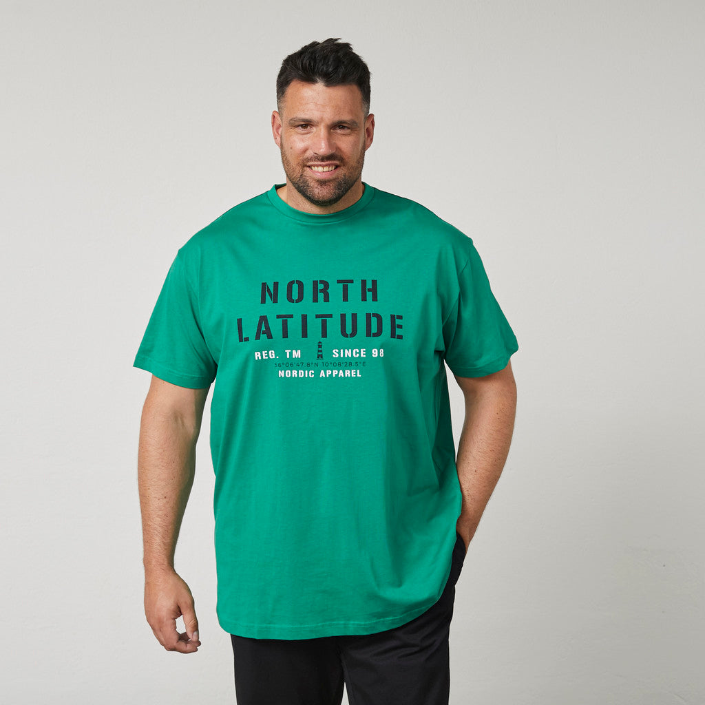 Kortærmet T-shirt i blød bomuldskvalitet med tydeligt brystprint. Det enkle snit og det grafiske udtryk giver et afslappet, tidløst look, der fungerer godt til hverdagsbrug og fritid.