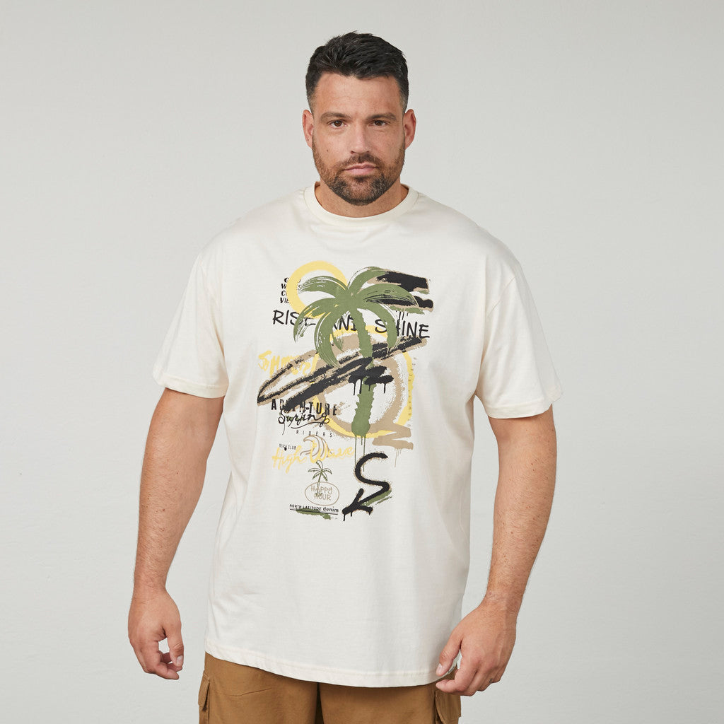 Grafisk T-shirt i blød bomuld med rund hals og korte ærmer. Designet med et detaljeret frontprint, der giver et afslappet sommerligt udtryk. Den klassiske pasform gør den nem at style til både hverdag og fritid.