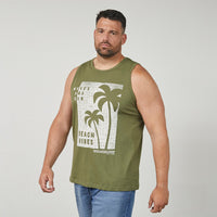 Ærmeløs top i 100% bomuld med print på fronten og afslappet pasform. En let og behagelig sommerstyle med grafisk udtryk, velegnet til varme dage, ferie og afslappet hverdagsbrug.