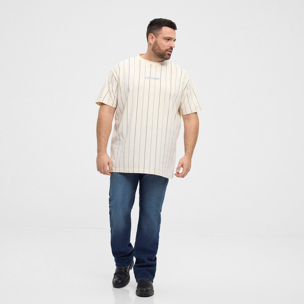 Kortærmet t-shirt med striber og lille frontprint. Blød bomuldskvalitet med afslappet pasform.