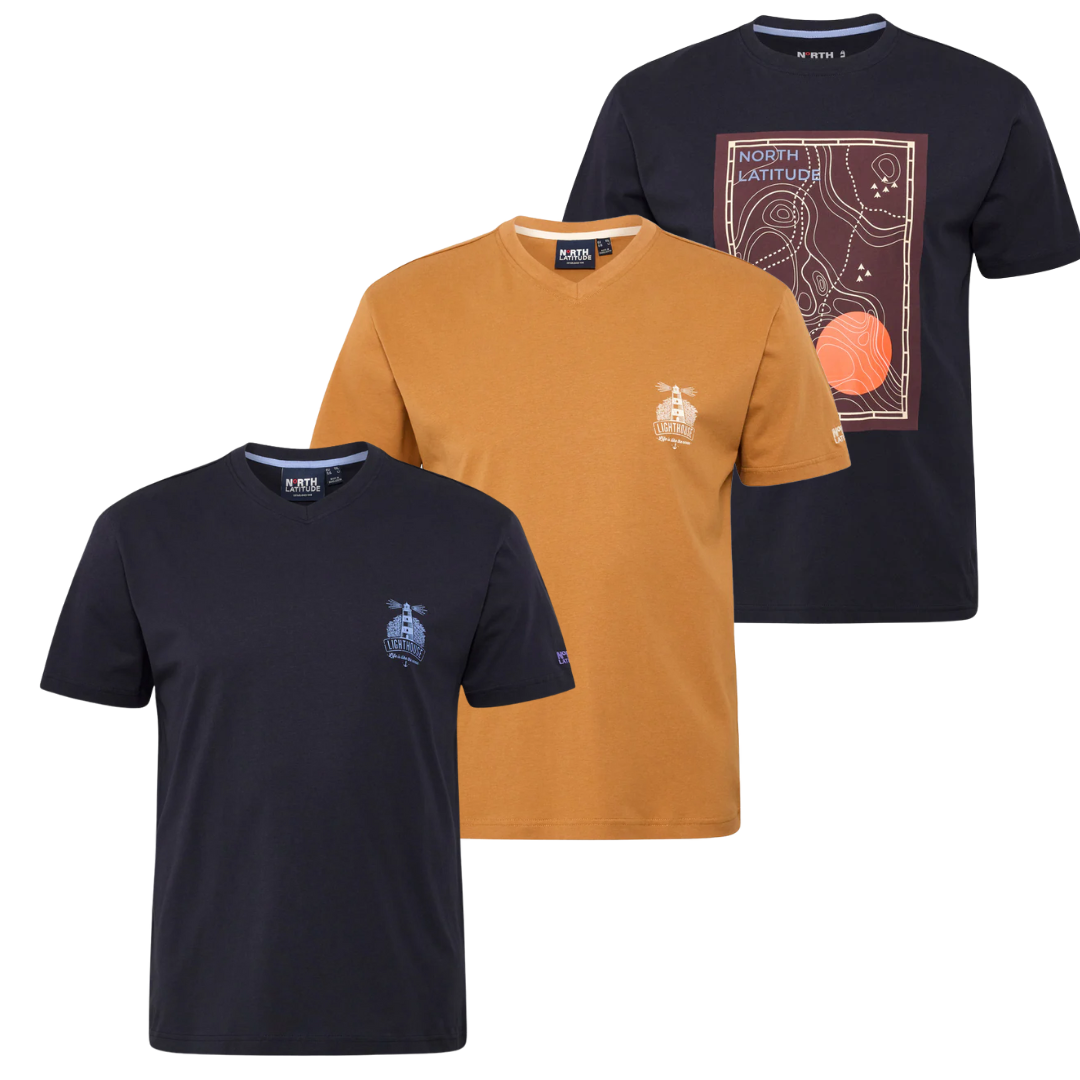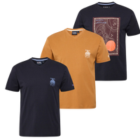 Her får du tre T-shirts i et mix af rene basisfarver og grafiske outdoor-prints. Kombinationen af enkelhed og detaljer giver dig fleksibilitet – perfekt til både hverdagen og det afslappede weekend-look.