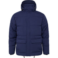 Polstret vinterjakke med høj krave og aftagelig hætte. Lavet i genanvendt polyester og designet til kulde.