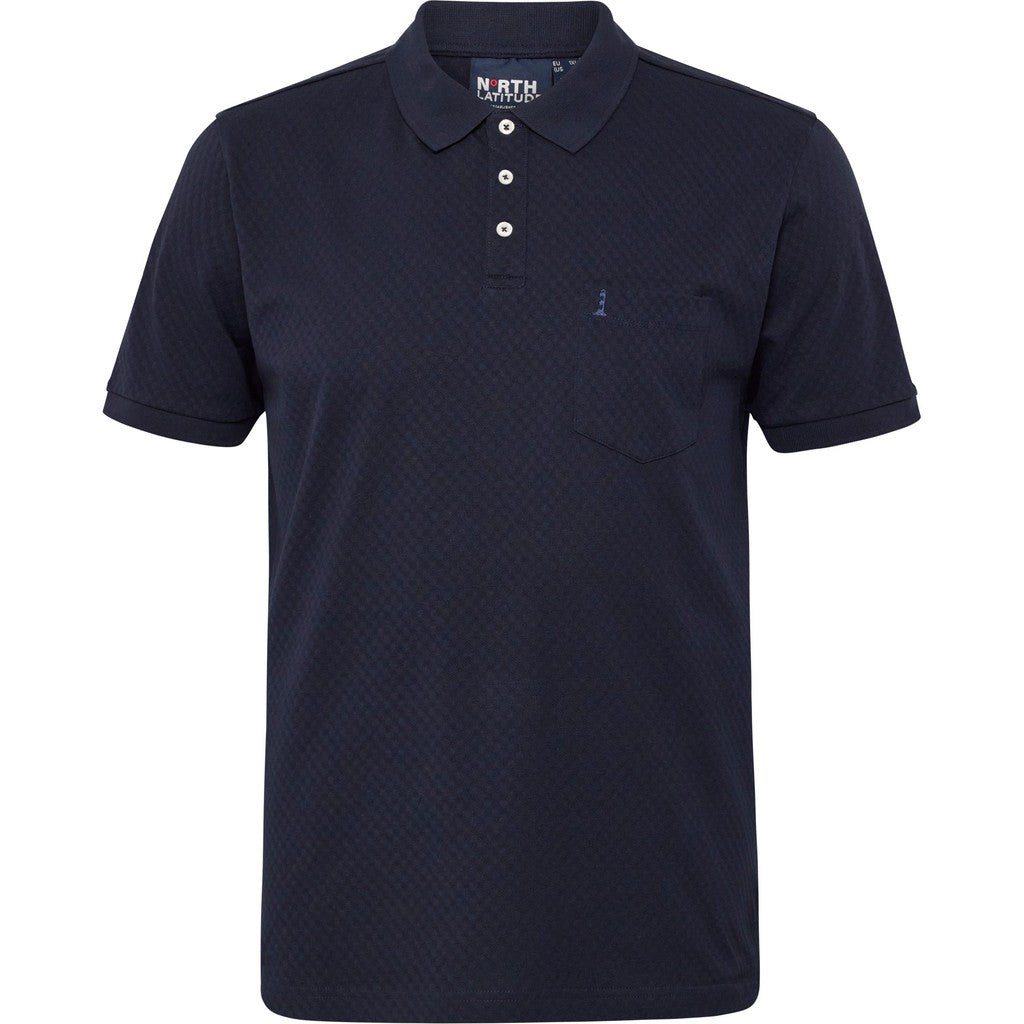 Kortærmet polo i bomuld med subtilt mønster i stoffet. Designet med klassisk krave, knaplukning og brystlomme. En komfortabel og stilren polo, der fungerer både til hverdag og pænere anledninger.