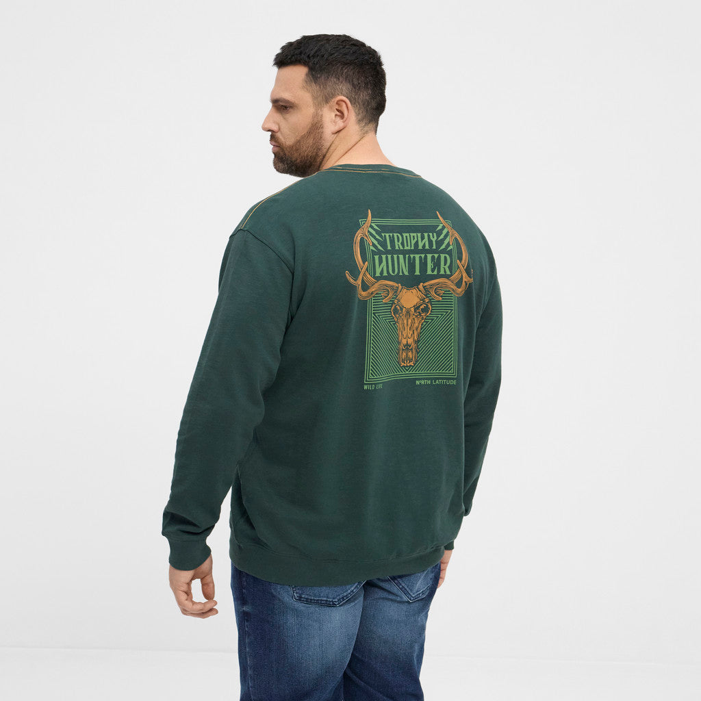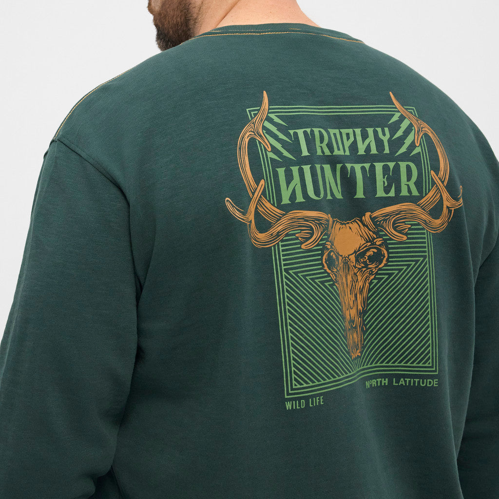 Sweatshirt i blød bomuld med markant rygprint i jagt-inspireret stil. Forstykket er holdt helt enkelt, mens bagsiden gør statementet. Komfortabel pasform og klassiske ribkanter.
