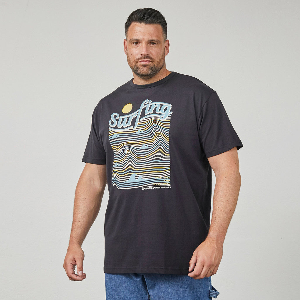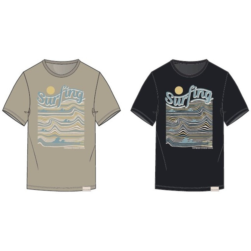 Grafisk T-shirt i blød bomuld med rund hals og korte ærmer. Designet med et surf-inspireret frontprint, der giver et afslappet og sommerligt udtryk. Den klassiske pasform gør den velegnet til både hverdag og fritid.