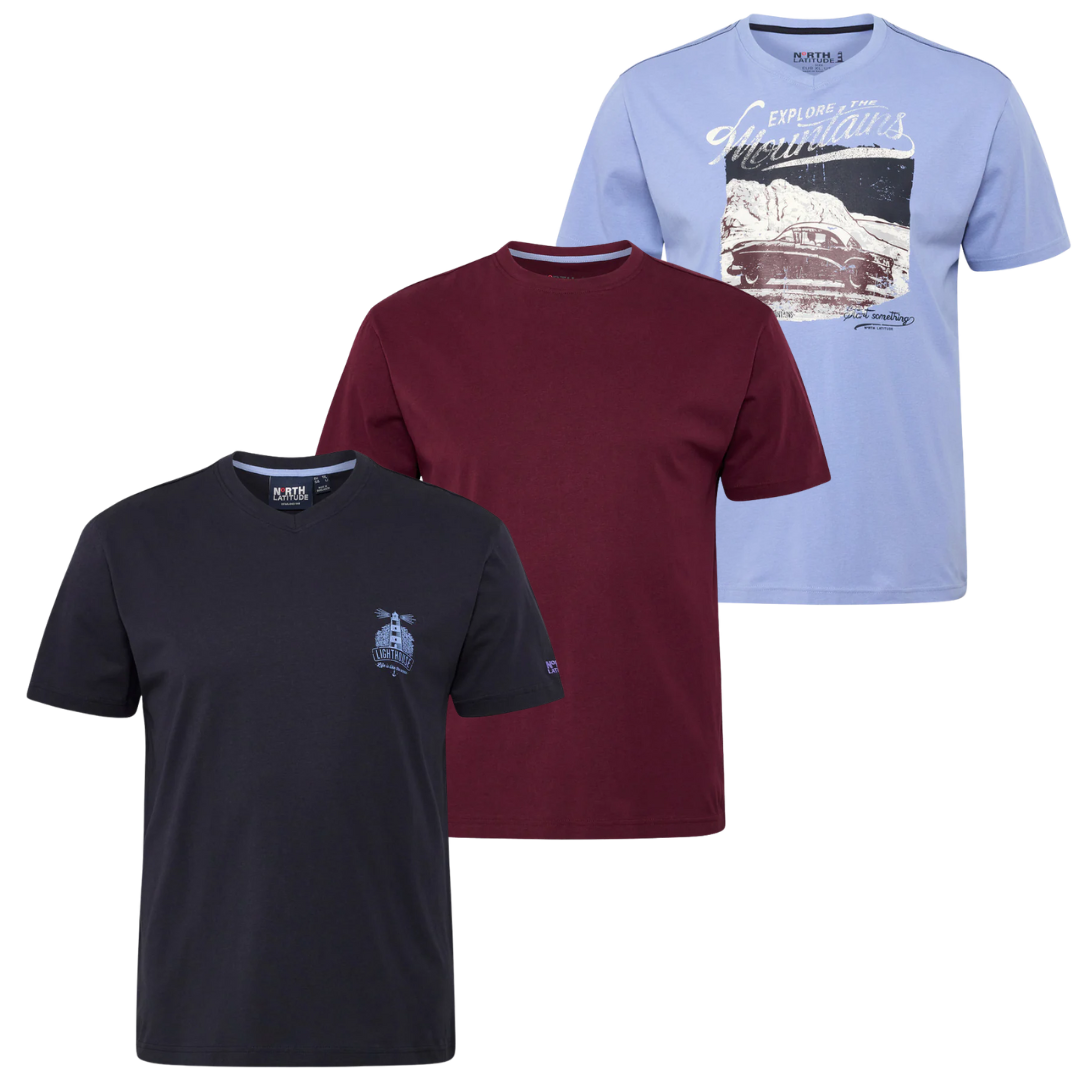 3-Pack T-shirt Classic (Navy, Rød, lyseblå)