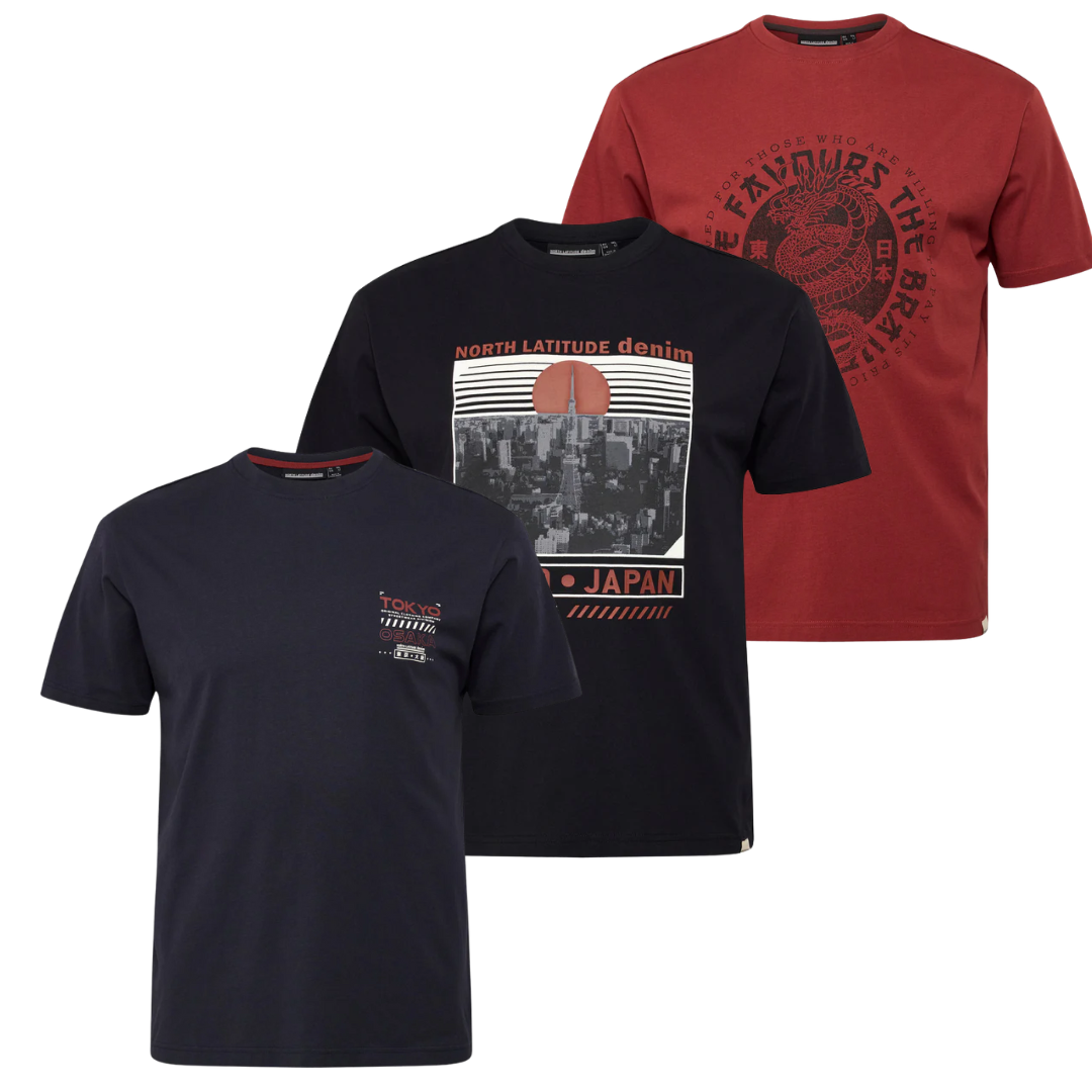 Her får du tre T-shirts med grafiske prints inspireret af japansk kultur, byliv og ikoniske detaljer. En pakke der kombinerer streetwear med komfort – perfekt til hverdagen og til dig, der vil skille dig ud.