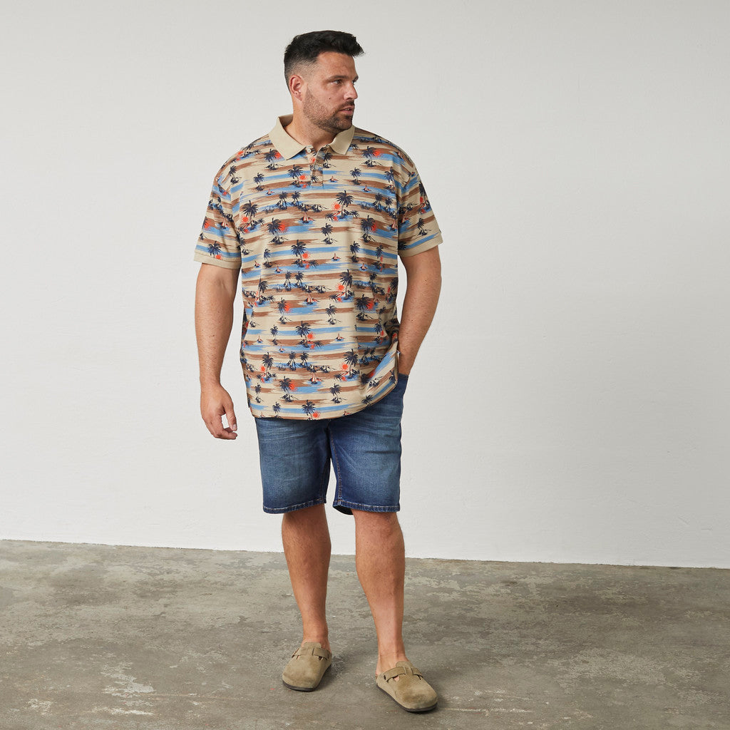 Kortærmet polo i blød bomuldskvalitet med markant all-over print. Det livlige mønster kombineret med klassisk polokrave giver et afslappet og sommerligt udtryk, velegnet til både hverdag og fritid.
