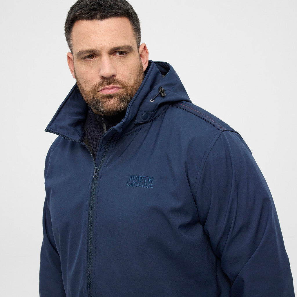 Funktionel softshelljakke i en polyester- og spandexblanding, der giver både fleksibilitet og komfort. Jakken er vindtæt, vandafvisende og udstyret med aftagelig hætte – perfekt til overgangsvejr og aktivt hverdagsbrug.