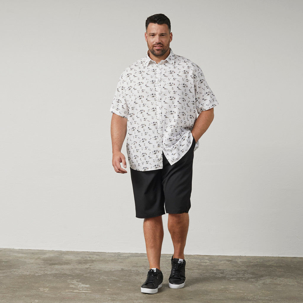 Kortærmet skjorte i let og åndbar kvalitet med diskret all-over mønster. Kombinationen af bomuld og hør giver en behagelig pasform og et afslappet, sommerligt udtryk, der fungerer godt til både hverdag og fritid.